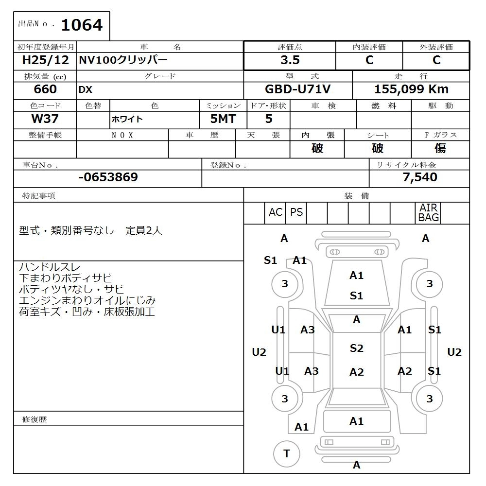 NISSAN NV100 CLIPPER 2013 г., лот № 1064