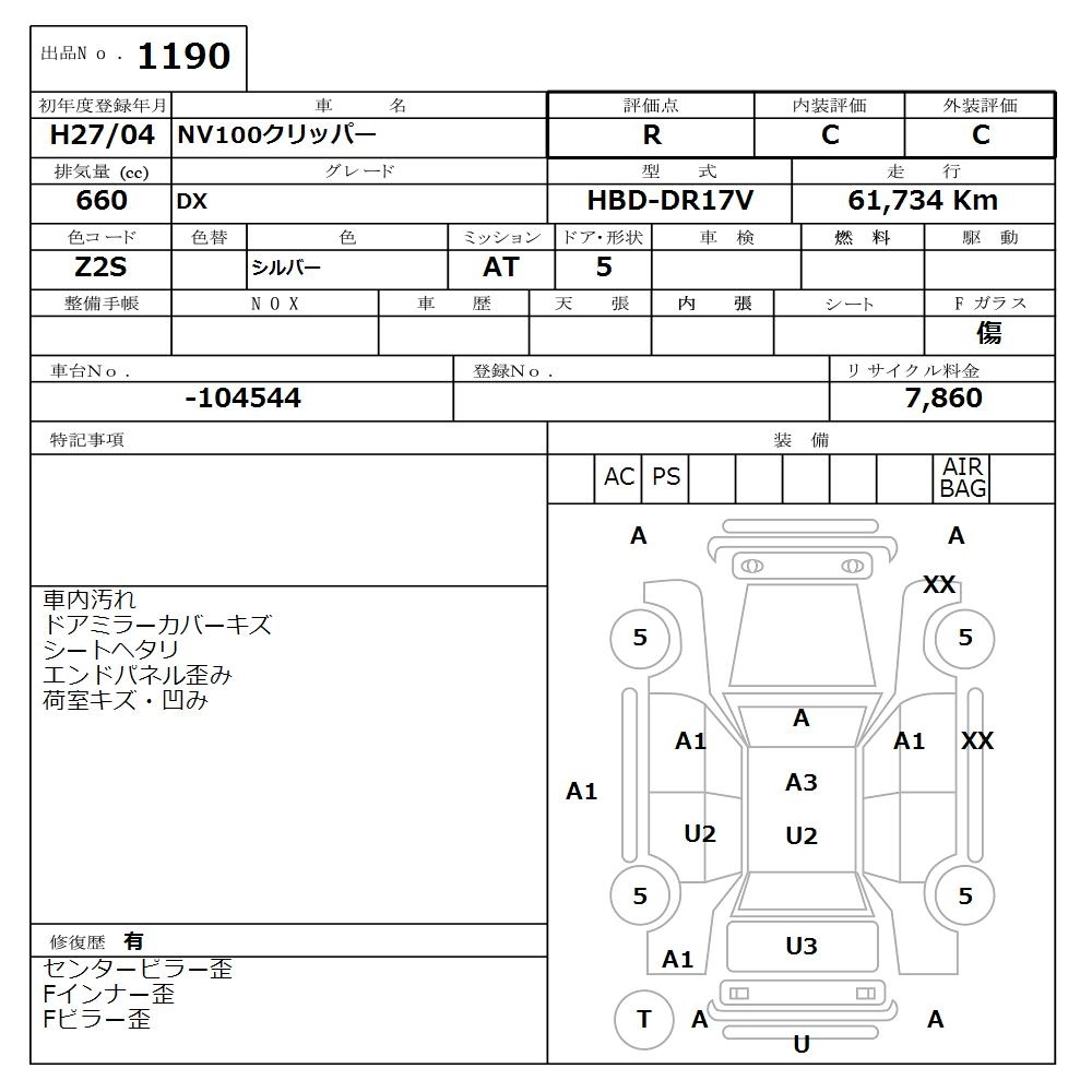 NISSAN NV100 CLIPPER 2015 г., лот № 1190