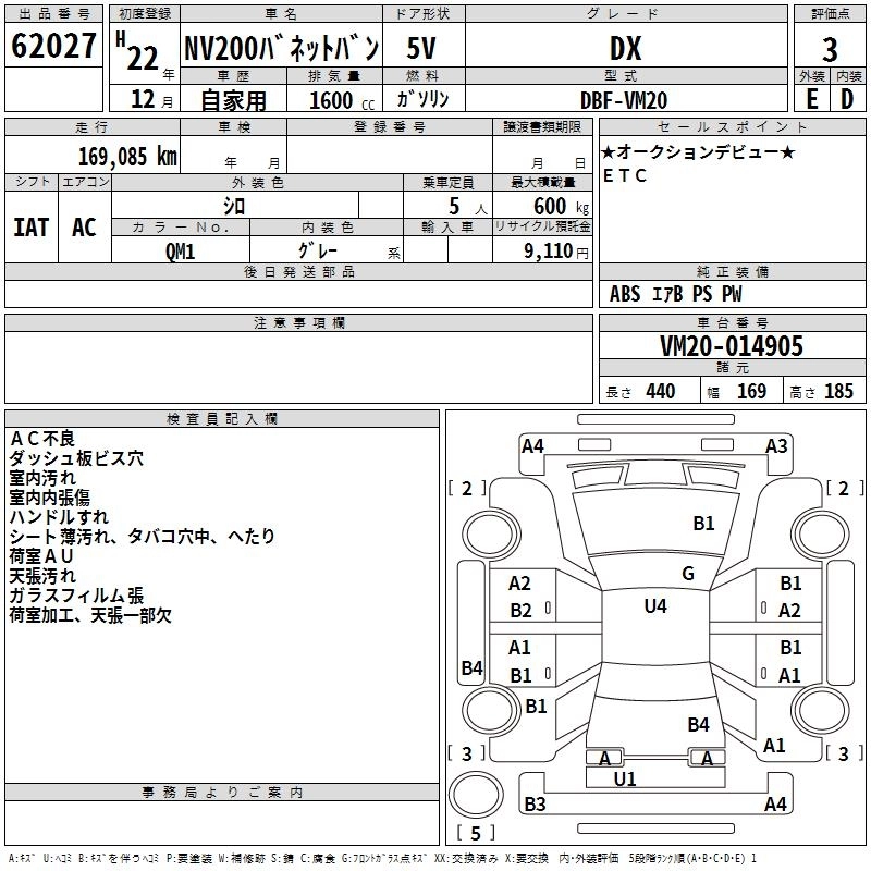NISSAN NV200 VANETTE VAN 2010 г., лот № 62027