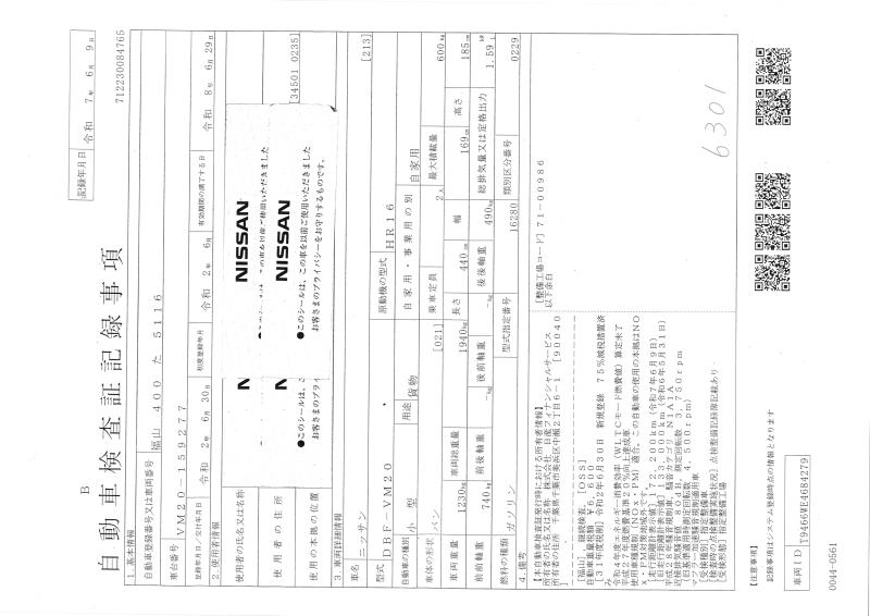 NISSAN NV200 VANETTE VAN 2020 г., лот № 1620
