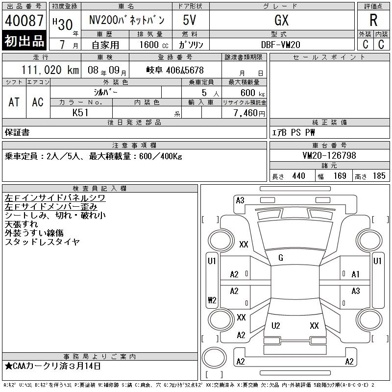 NISSAN NV200 VANETTE VAN 2018 г., лот № 40087