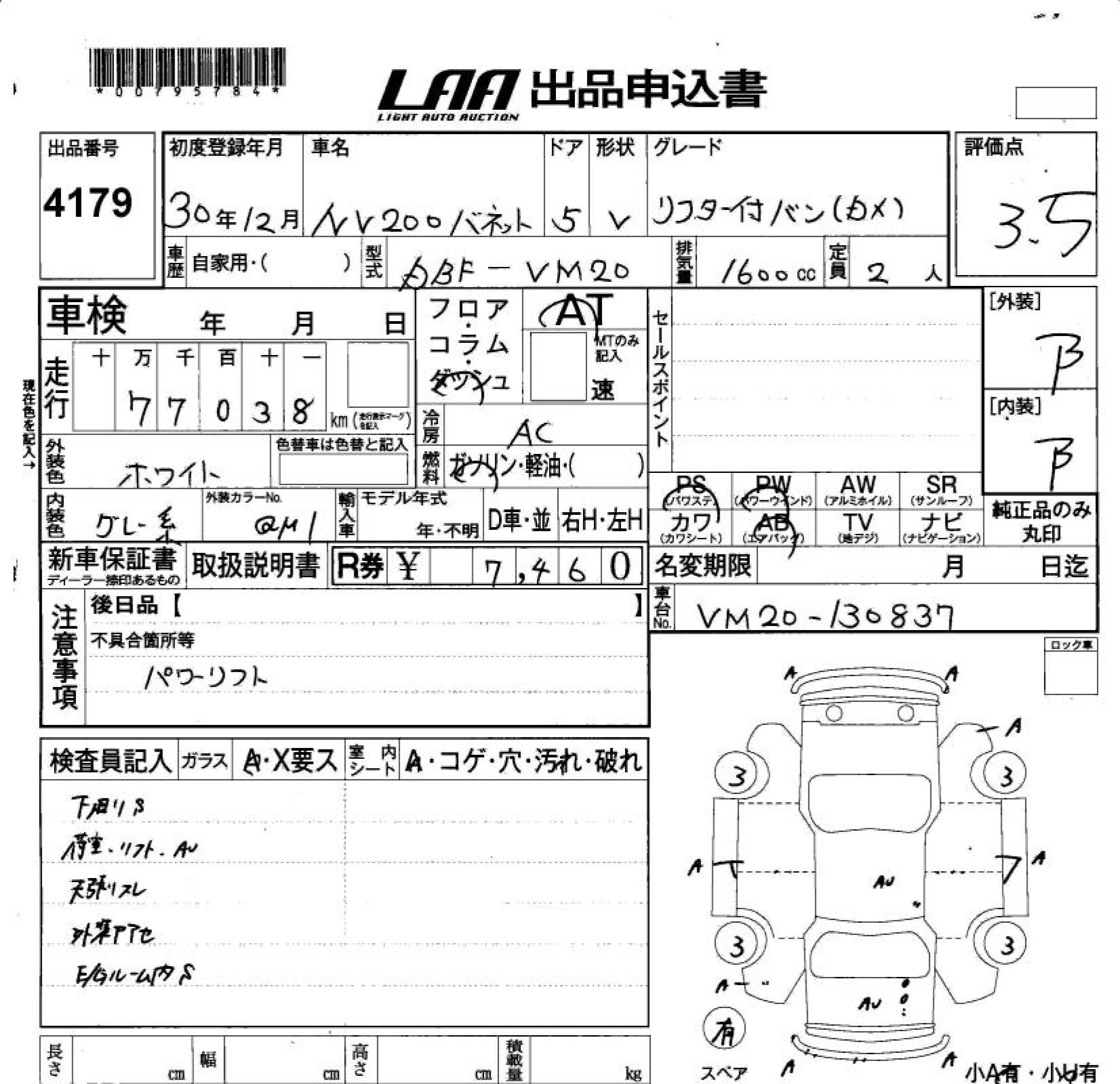 NISSAN NV200 VANETTE VAN 2018 г., лот № 4179