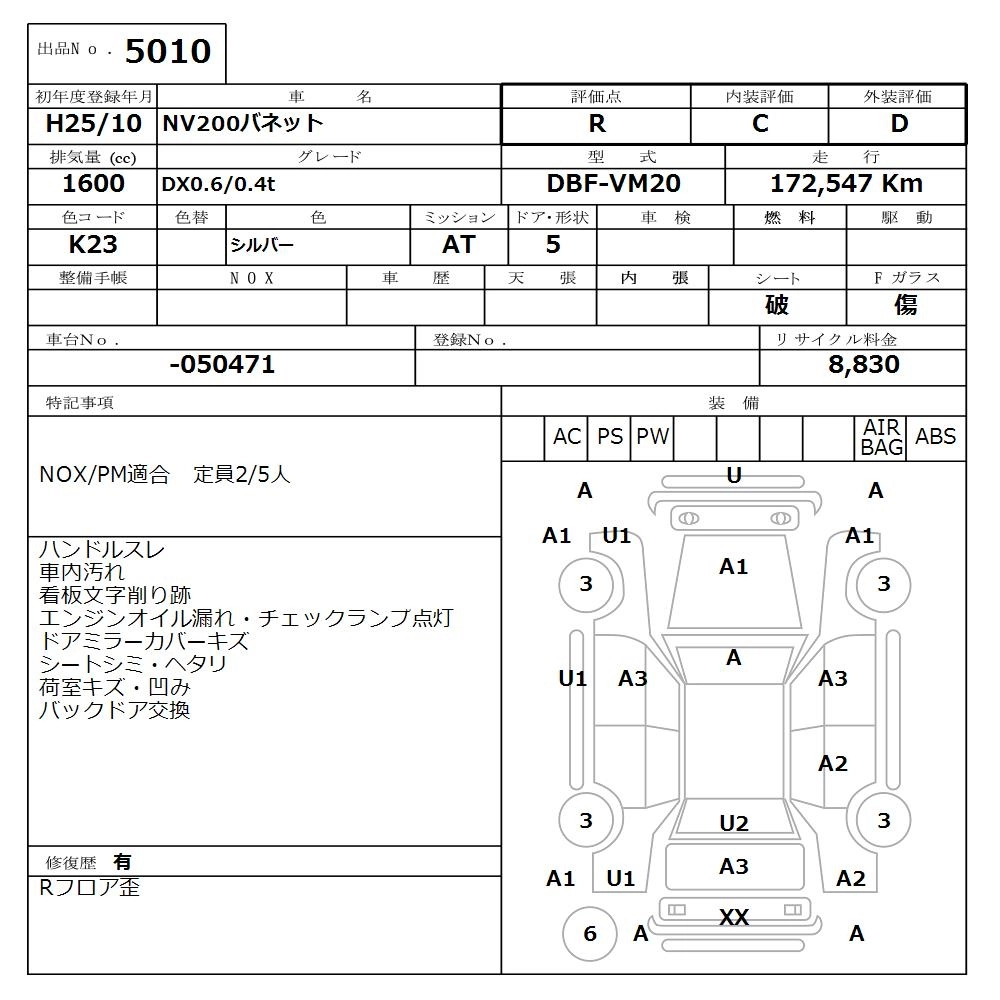 NISSAN NV200 VANETTE 2013 г., лот № 5010