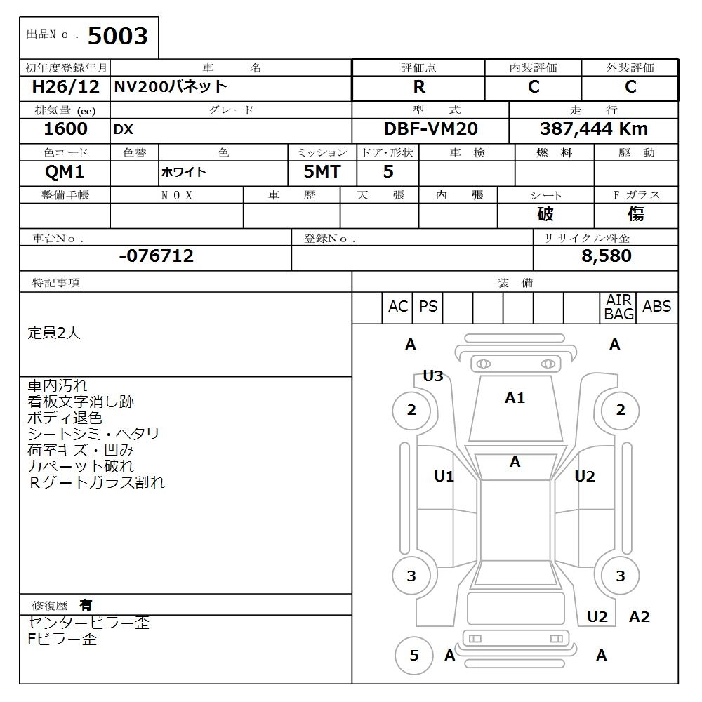 NISSAN NV200 VANETTE 2014 г., лот № 5003
