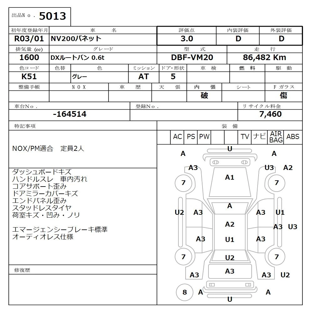 Статус выставлен на аукцион Лот 5013 Аукцион Nissan Osaka Дата аукциона 16.03.2026