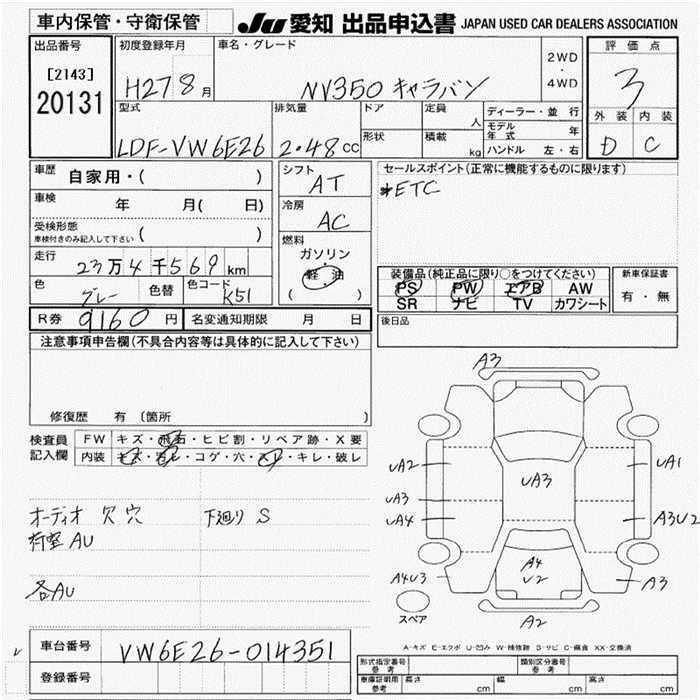 NISSAN NV350 CARAVAN 2015 г., лот № 20131