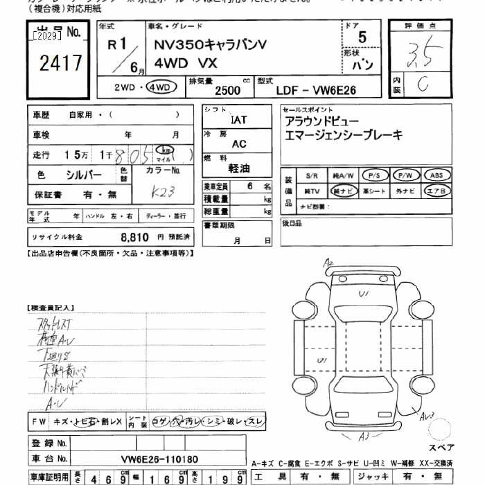 NISSAN NV350 CARAVAN 2019 г., лот № 2417