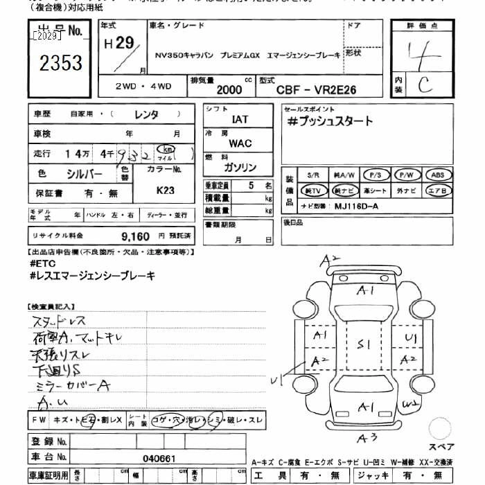 NISSAN NV350 CARAVAN 2017 г., лот № 2353