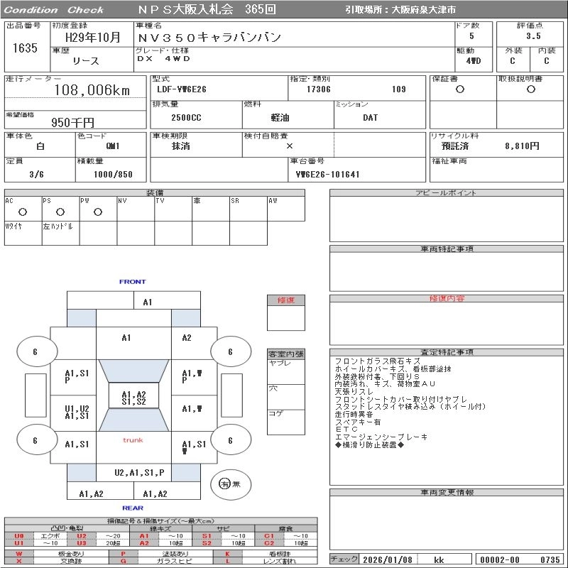 NISSAN NV350 CARAVAN 2017 г., лот № 1635