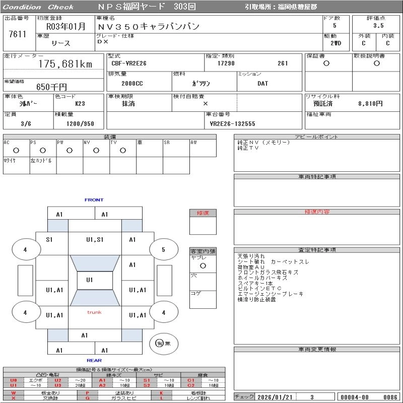 Статус выставлен на аукцион Лот 7611 Аукцион NPS Fukuoka Дата аукциона 03.02.2026