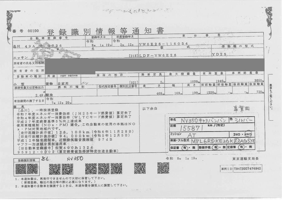 NISSAN NV350 CARAVAN 2020 г., лот № 86