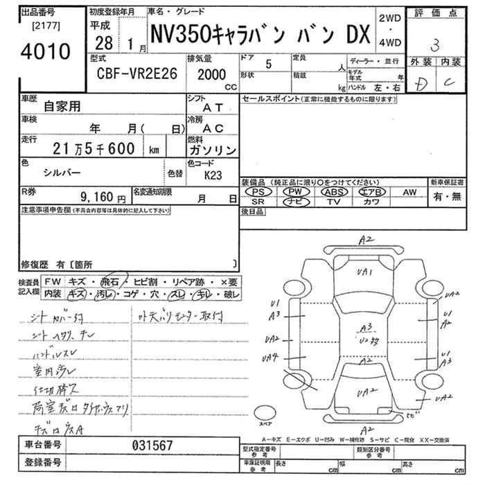 NISSAN NV350 CARAVAN 2016 г., лот № 4010
