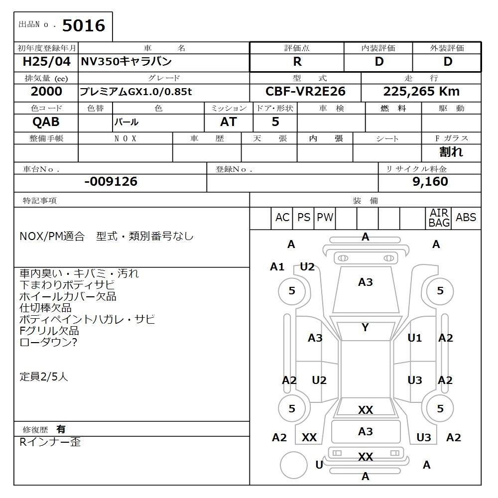 Статус выставлен на аукцион Лот 5016 Аукцион Nissan Osaka Дата аукциона 16.03.2026