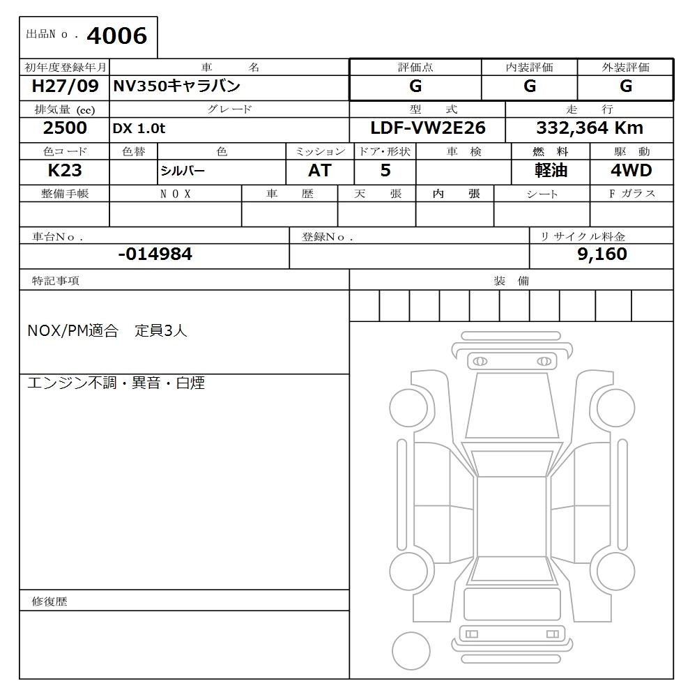 NISSAN NV350 CARAVAN 2015 г., лот № 4006