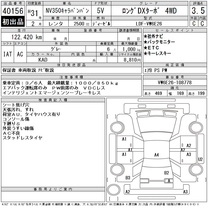 NISSAN NV350 CARAVAN 2019 г., лот № 40156
