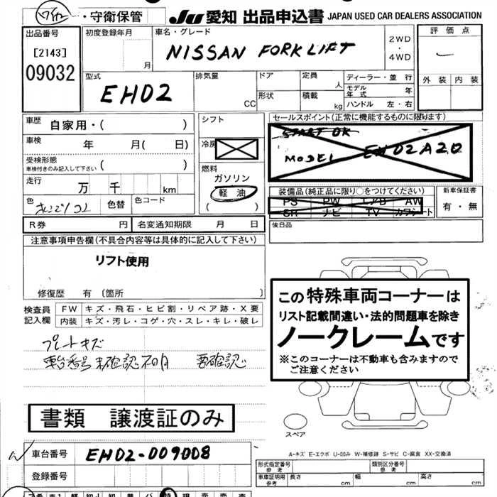 Статус выставлен на аукцион Лот 9032 Аукцион JU Aichi Дата аукциона 29.01.2026