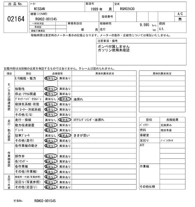 Статус выставлен на аукцион Лот 2164 Аукцион ARAI Kenki Дата аукциона 03.02.2026