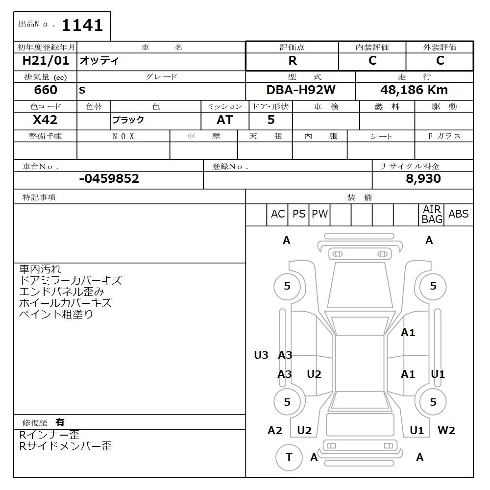 | RIDER PLUS NAVI HDD | DBA-H92W | 3G83 | FF | 4AT | 657cc | 50ps(37kW)/6500rpm | AИ-92 | 1 743 000 | |