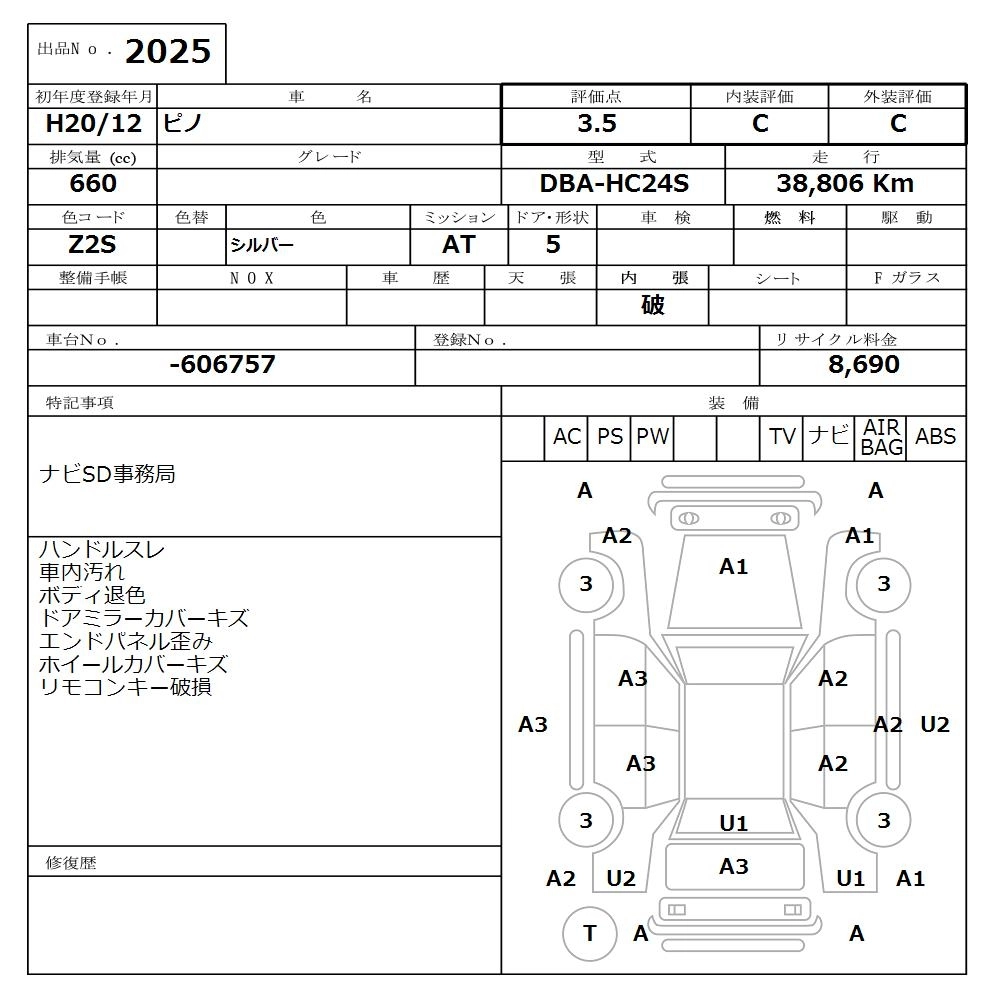 | S | DBA-HC24S | K6A | FF | 3AT | 658cc | 54ps(40kW)/6500rpm | AИ-92 | 913 500 | |