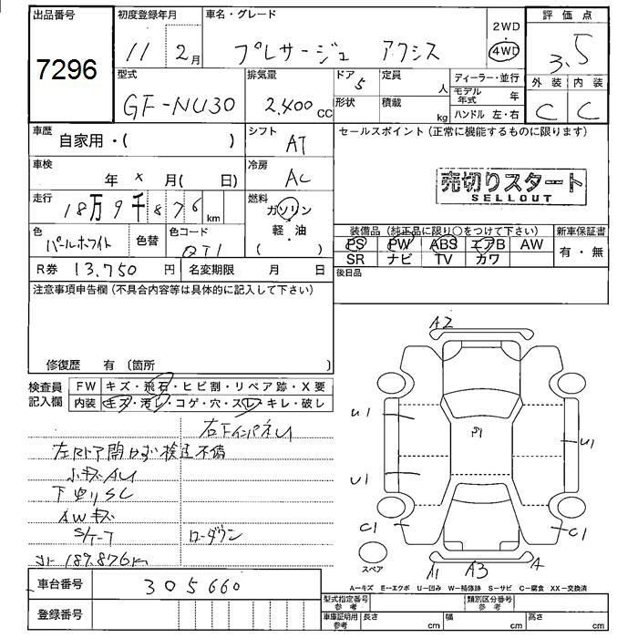 | CIII LIMITED | GF-NU30 | KA24DE | Full-time 4WD | 4AT | 2388cc | 150ps(110kW)/5600rpm | AИ-92 | 2 838 000 | |