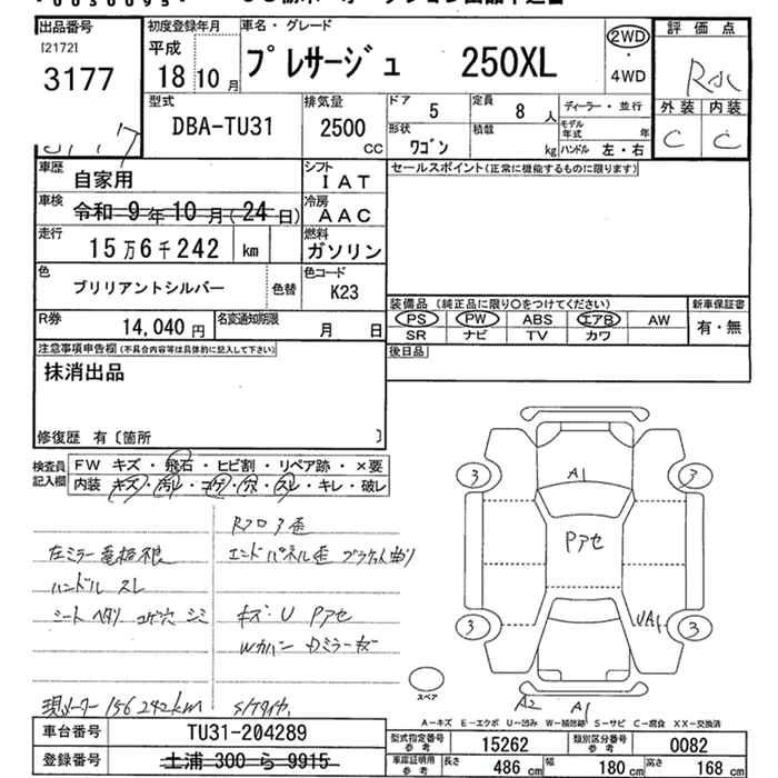 | 250HIGHWAY STAR J | DBA-TNU31 | QR25DE(NEO) | Full-time 4WD | 4AT | 2488cc | 163ps(120kW)/5200rpm | AИ-92 | 2 845 500 | |