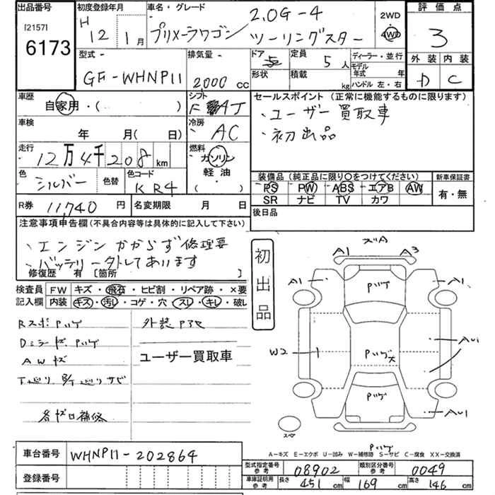 | 2.0G-4 NAVI EDITION II | GF-WHNP11 | SR20DE | Full-time 4WD | 4AT | 1998cc | 150ps(110kW)/6400rpm | AИ-95 | 2 380 000 | |