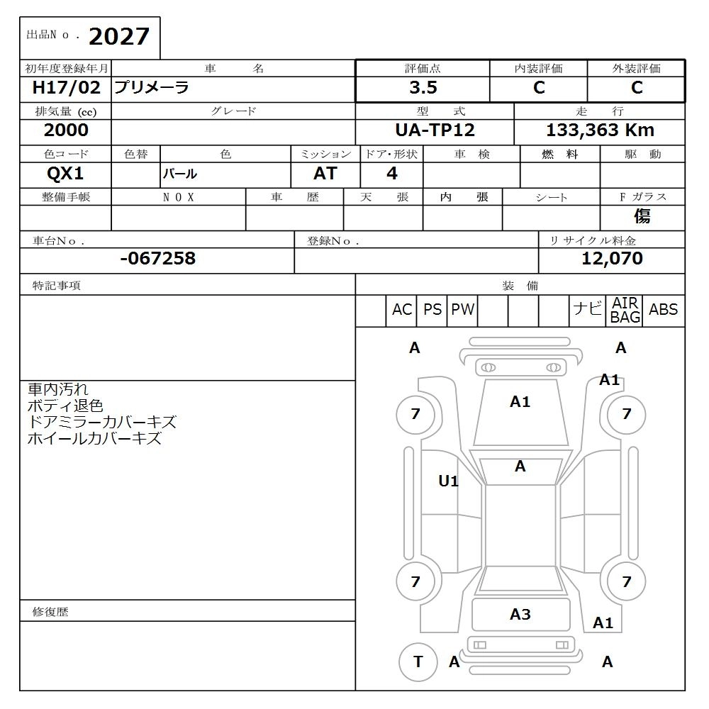 Статус выставлен на аукцион Лот 2027 Аукцион Nissan Osaka Дата аукциона 16.03.2026