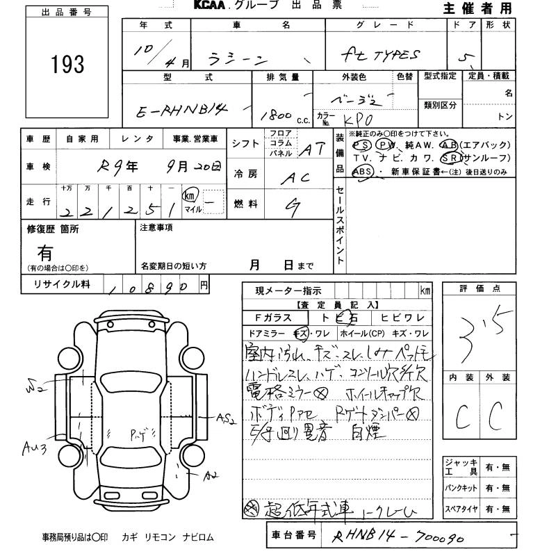 | FORZA S PACKAGE | E-RKNB14 | SR20DE | Full-time 4WD | 4AT | 1998cc | 145ps(107kW)/6400rpm | AИ-92 | 2 178 000 | |