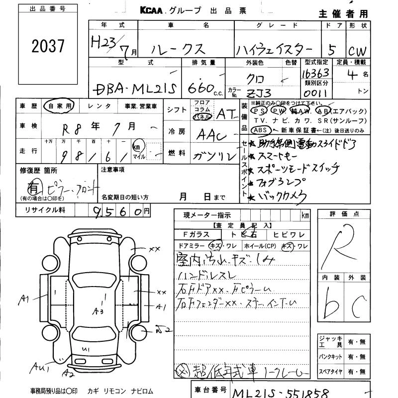 | HIGHWAY STAR LIMITED | DBA-ML21S | K6A | FF | CVT | 658cc | 54ps(40kW)/6500rpm | AИ-92 | 1 454 250 | |