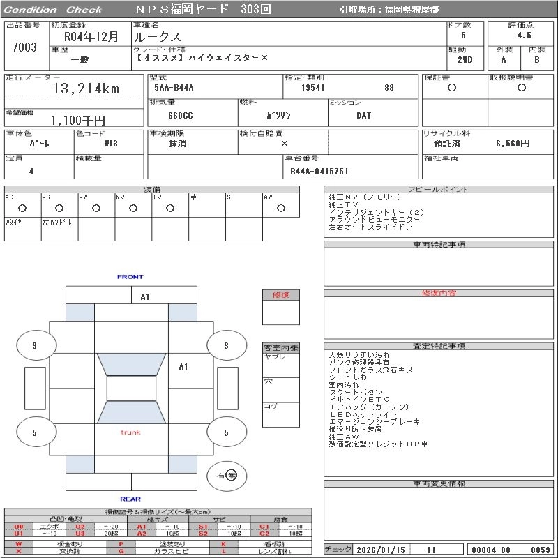 Статус выставлен на аукцион Лот 7003 Аукцион NPS Fukuoka Дата аукциона 03.02.2026