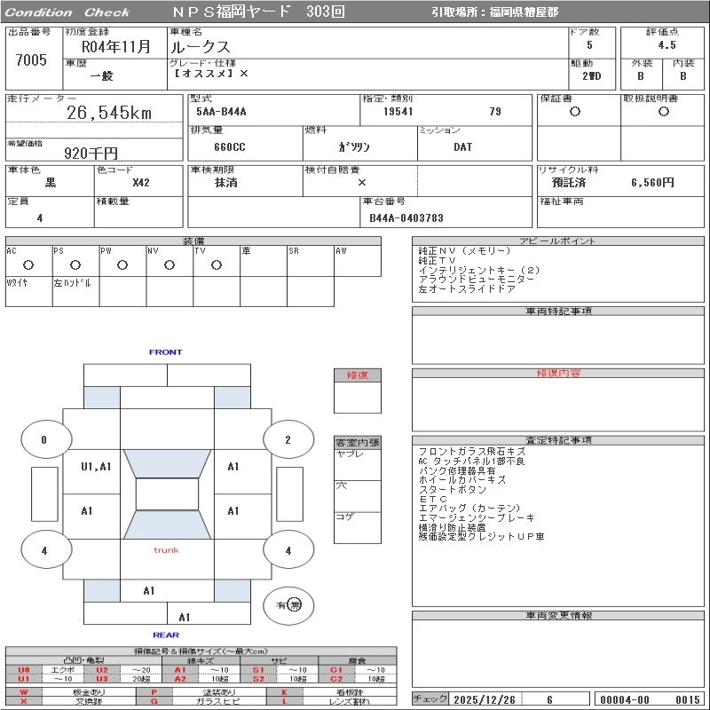Статус выставлен на аукцион Лот 7005 Аукцион NPS Fukuoka Дата аукциона 03.02.2026