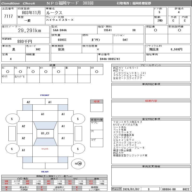 Статус выставлен на аукцион Лот 7117 Аукцион NPS Fukuoka Дата аукциона 03.02.2026
