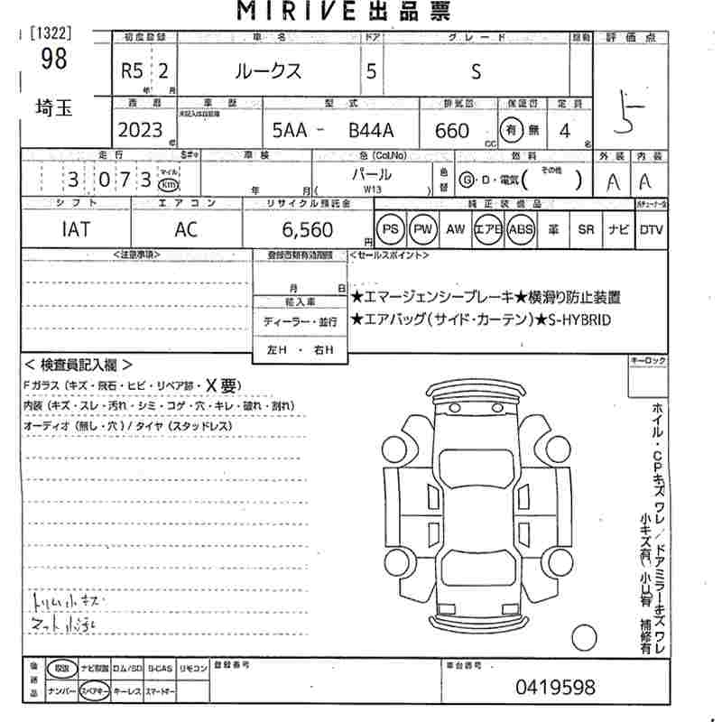 Статус выставлен на аукцион Лот 98 Аукцион MIRIVE Saitama Дата аукциона 18.03.2026