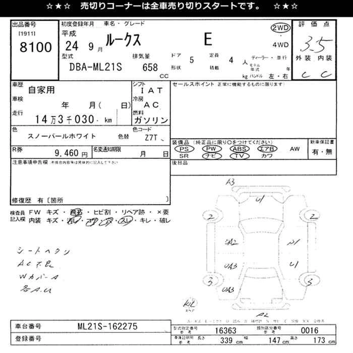 | X IDLING STOP | DBA-ML21S | K6A | FF | CVT | 658cc | 54ps(40kW)/6500rpm | AИ-92 | 1 329 300 | |