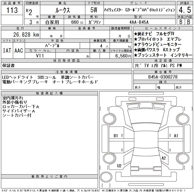 HIGHWAY STAR G TURBO PROPILOT EDITION 4AA-B45A BR06-SM21 FF CVT 659cc 64ps(47kW)/5600rpm AИ-92 1 932 700