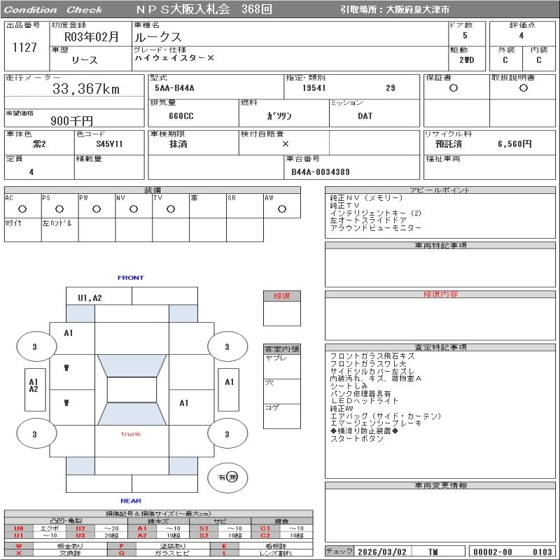 Статус продан Лот 1127 Аукцион NPS Osaka Дата аукциона 17.03.2026