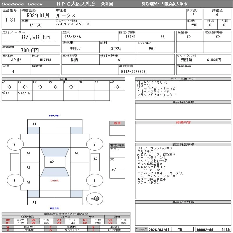 Статус продан Лот 1131 Аукцион NPS Osaka Дата аукциона 17.03.2026