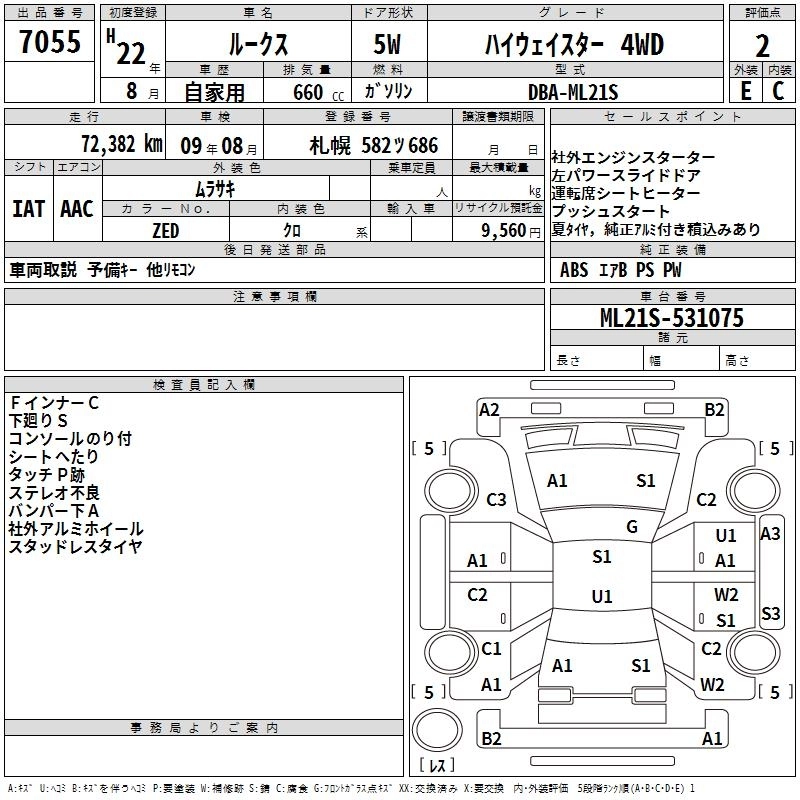 HIGHWAY STAR DBA-ML21S K6A FF CVT 658cc 54ps(40kW)/6500rpm AИ-92 1 464 750