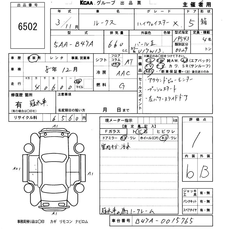 Статус выставлен на аукцион Лот 6502 Аукцион KCAA Fukuoka Дата аукциона 19.03.2026