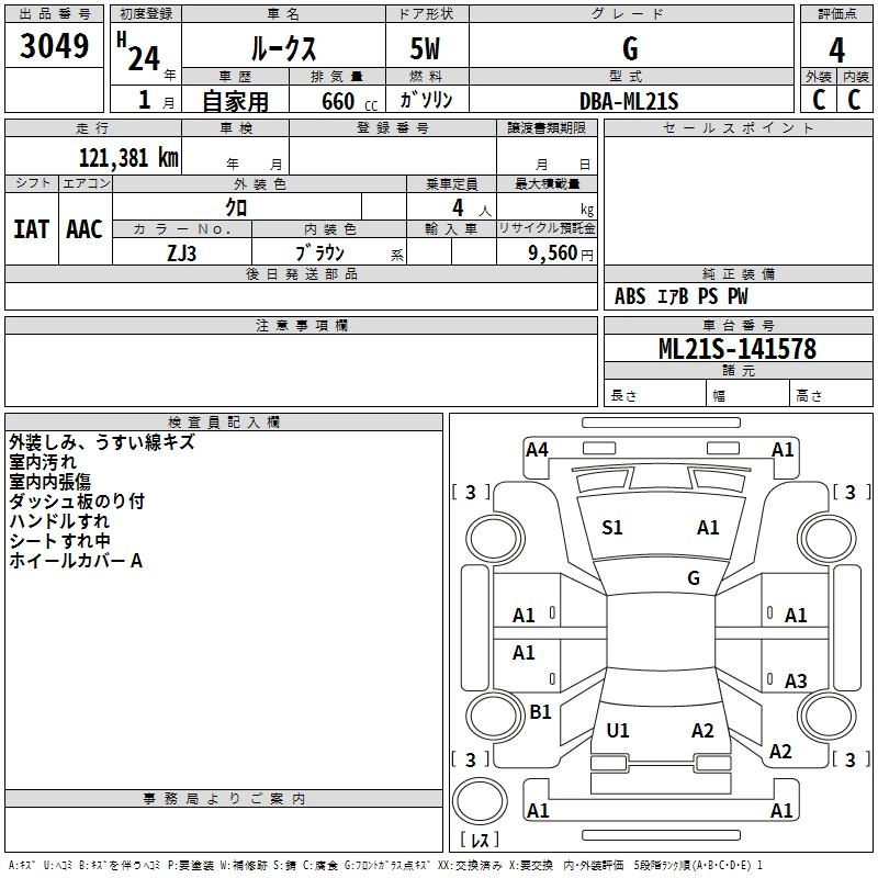 | G | DBA-ML21S | K6A | FF | CVT | 658cc | 54ps(40kW)/6500rpm | AИ-92 | 1 307 250 | |