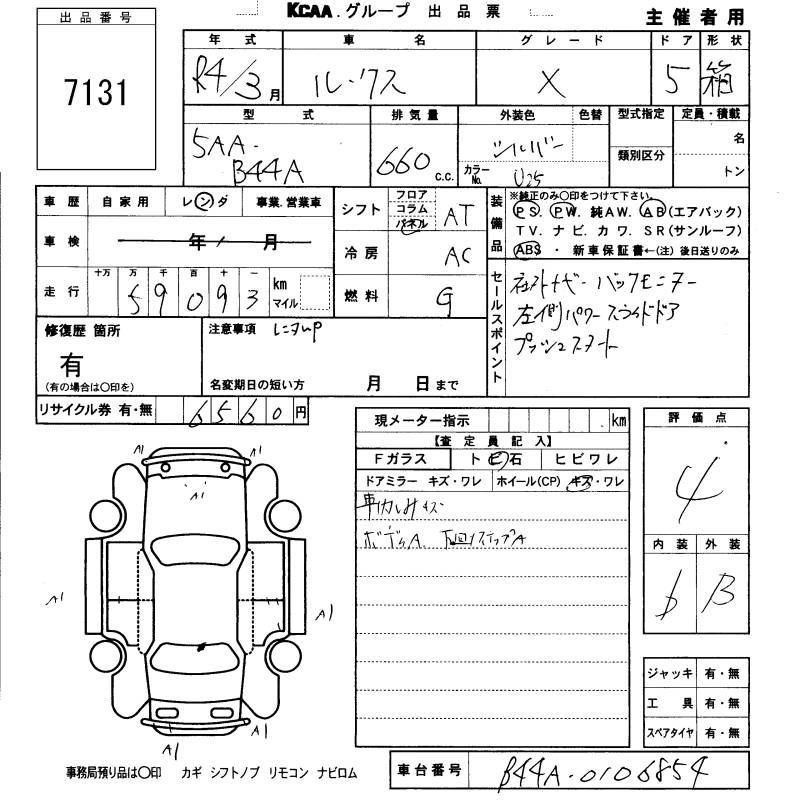 Статус не продан Лот 7131 Аукцион KCAA Fukuoka Дата аукциона 26.03.2026