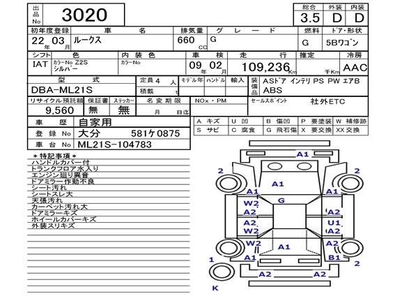| G | DBA-ML21S | K6A | FF | CVT | 658cc | 54ps(40kW)/6500rpm | AИ-92 | 1 307 250 | |