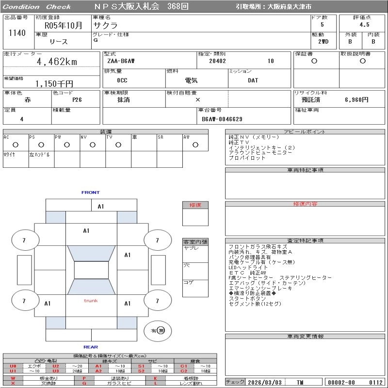 Статус выставлен на аукцион Лот 1140 Аукцион NPS Osaka Дата аукциона 17.03.2026