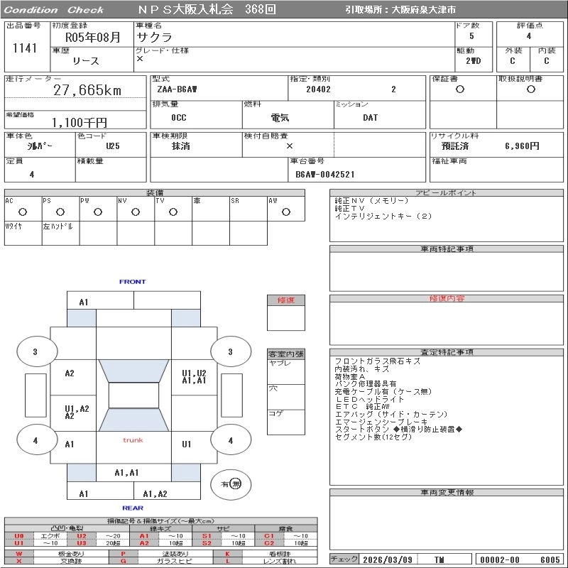 Статус выставлен на аукцион Лот 1141 Аукцион NPS Osaka Дата аукциона 17.03.2026