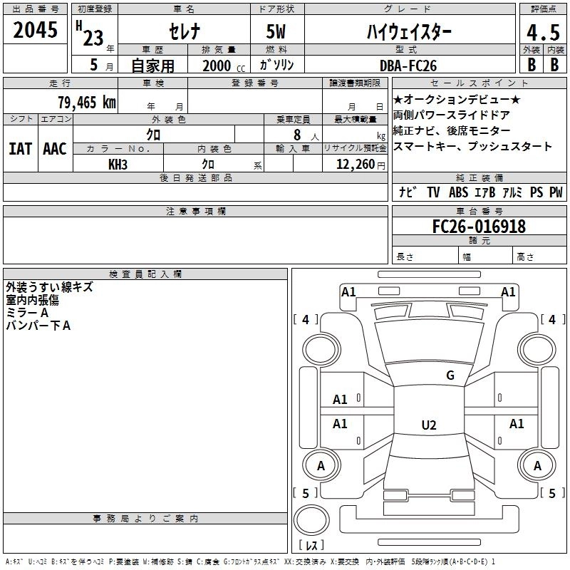 | HIGHWAY STAR V AERO SELECTION | DBA-FC26 | MR20DD | FF | CVT | 1997cc | 147ps(108kW)/5600rpm | AИ-92 | 2 795 100 |