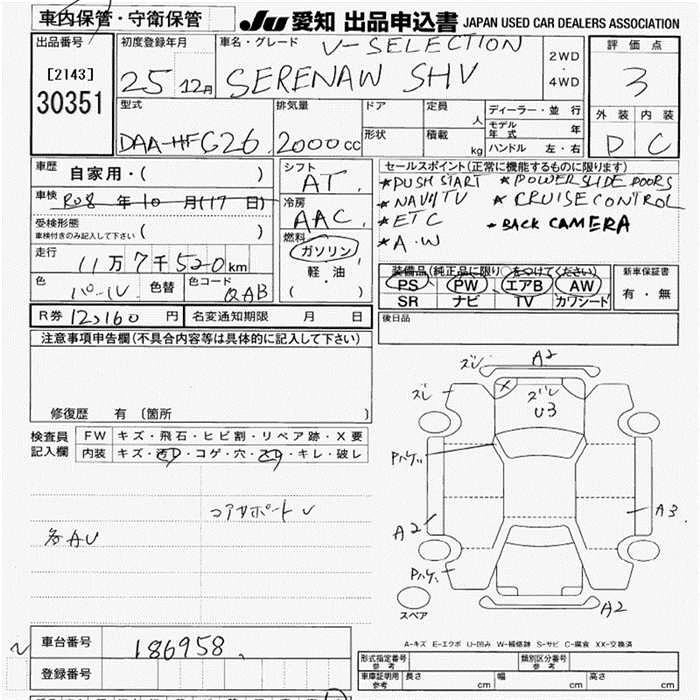NISSAN SERENA 2013 г., лот № 30351