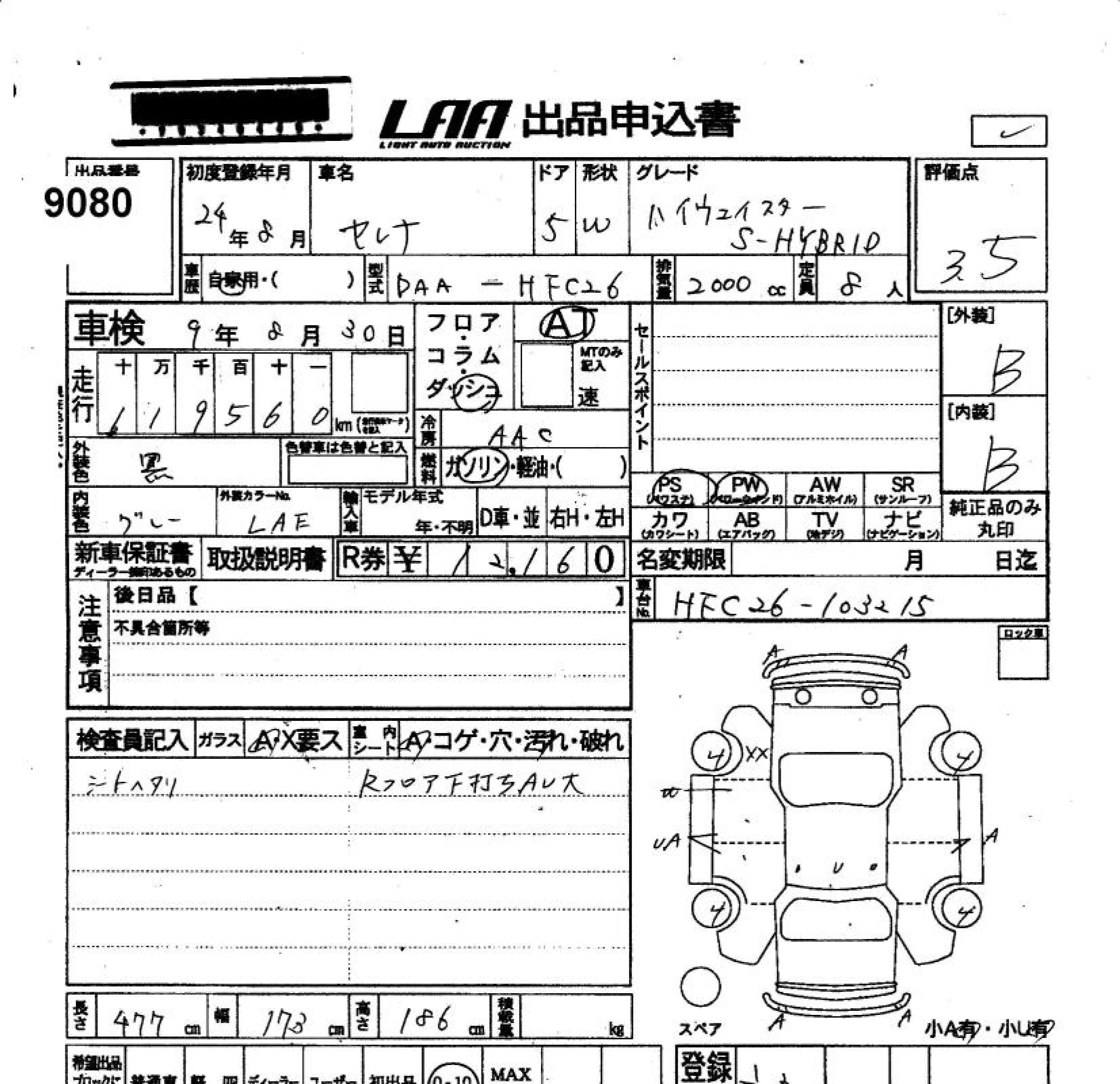 | 20G S-HYBRID | DAA-HC26 | MR20DD | FF | CVT | 1997cc | 147ps(108kW)/5600rpm | AИ-92 | 2 635 500 | |