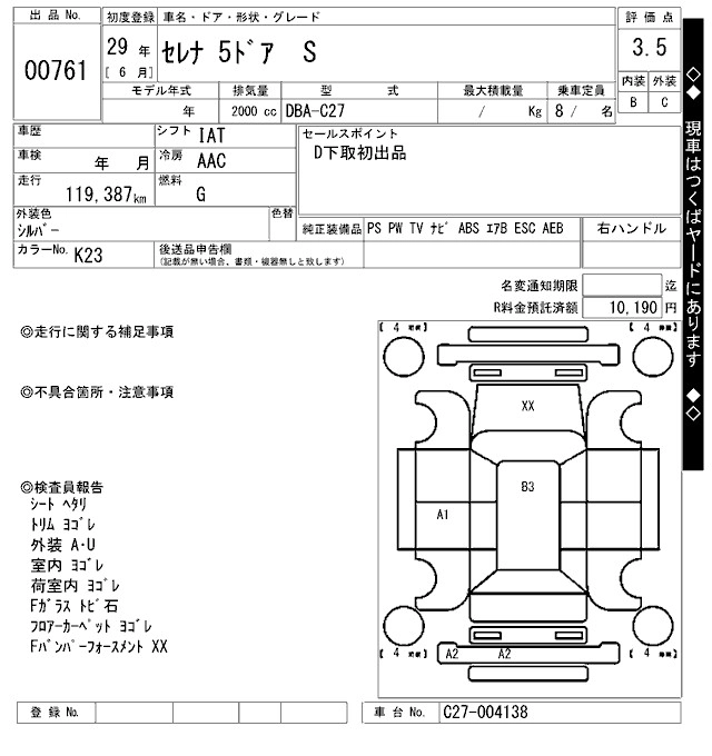 | RIDER V SELECTION | DAA-GC27 | MR20DD | FF | CVT | 1997cc | 150ps(110kW)/6000rpm | AИ-92 | 3 335 040 | |