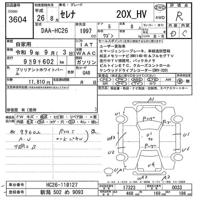 | 20G S-HYBRID | DAA-HC26 | MR20DD | FF | CVT | 1997cc | 147ps(108kW)/5600rpm | AИ-92 | 2 764 800 | |