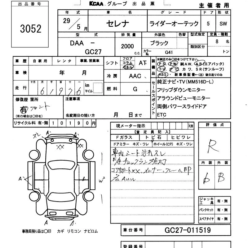 NISSAN SERENA 2017 г., лот № 3052